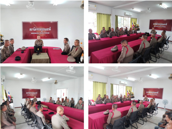 พ.ต.อ.ธันย์พศิน เพ็งพี ผกก.ฯ ต้อนรับให้โอวาทและแนะนำให้ตั้งใจปฏิบัติหน้าที่ๆ ได้รับมอบหมาย